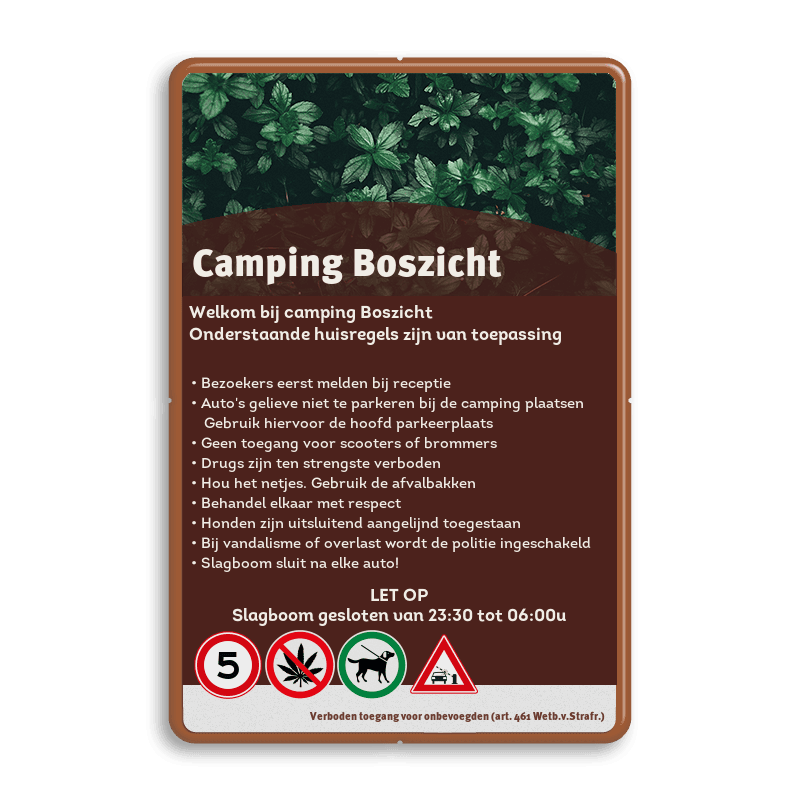 Informatiebord huisregels voor camping en recreatieparken